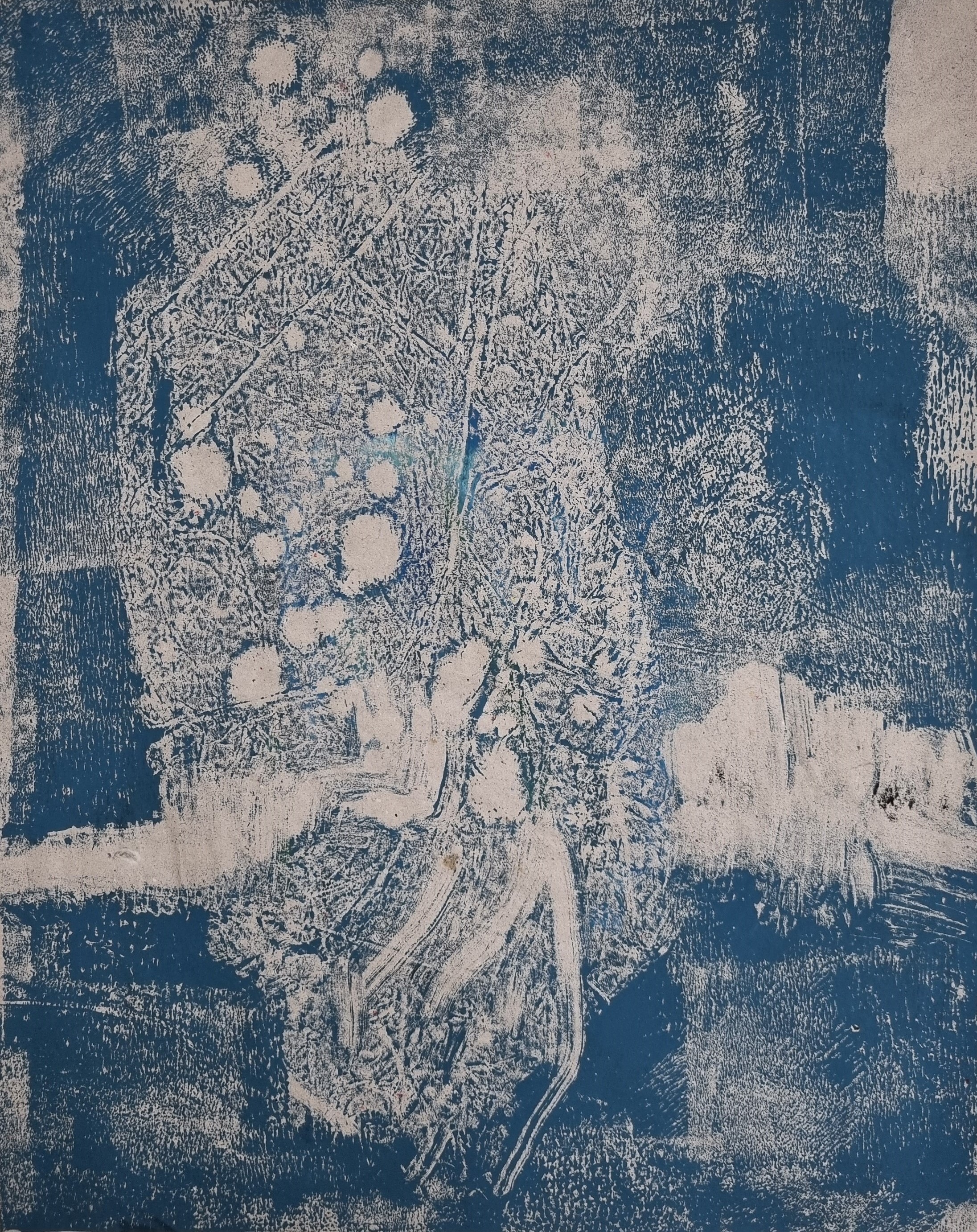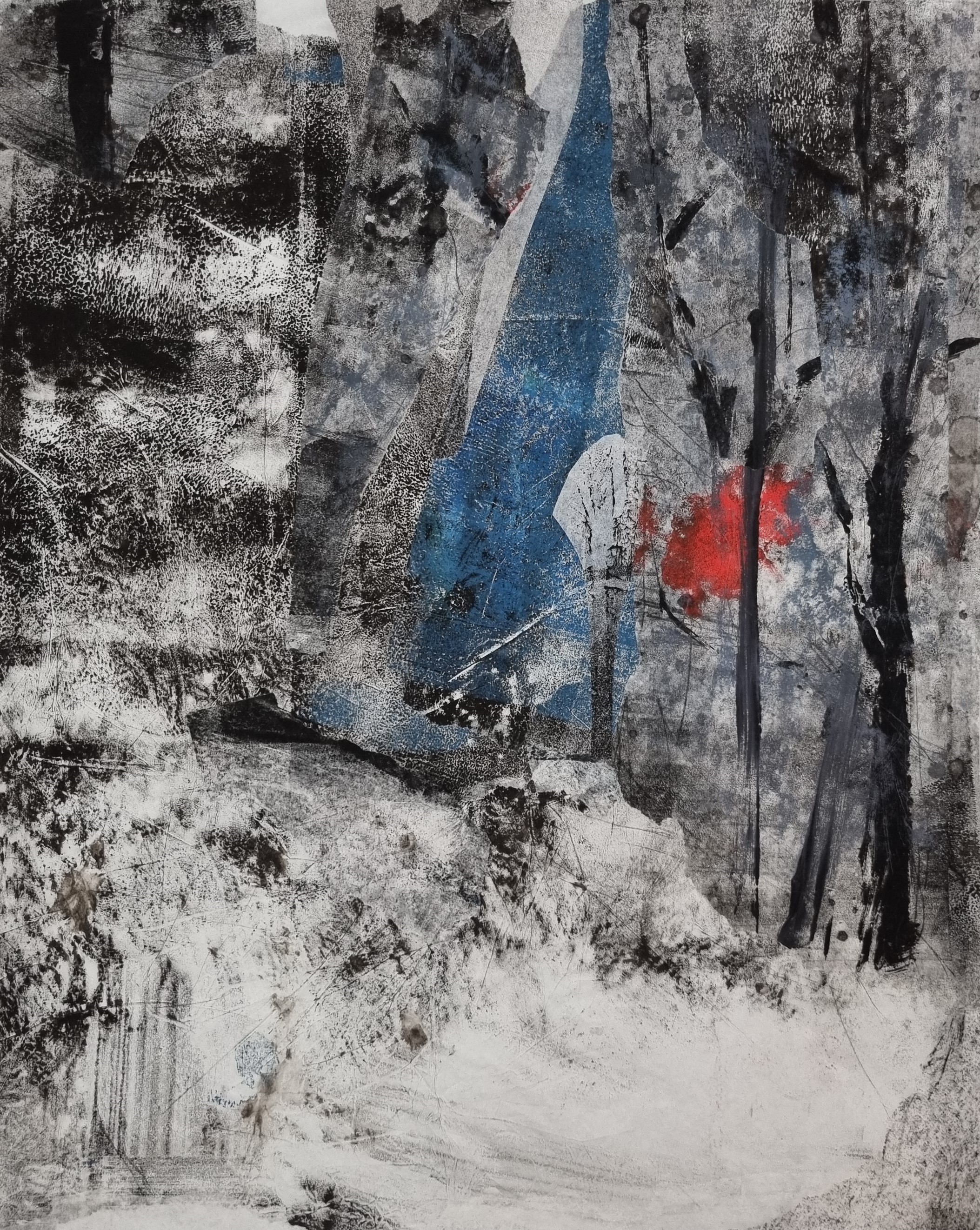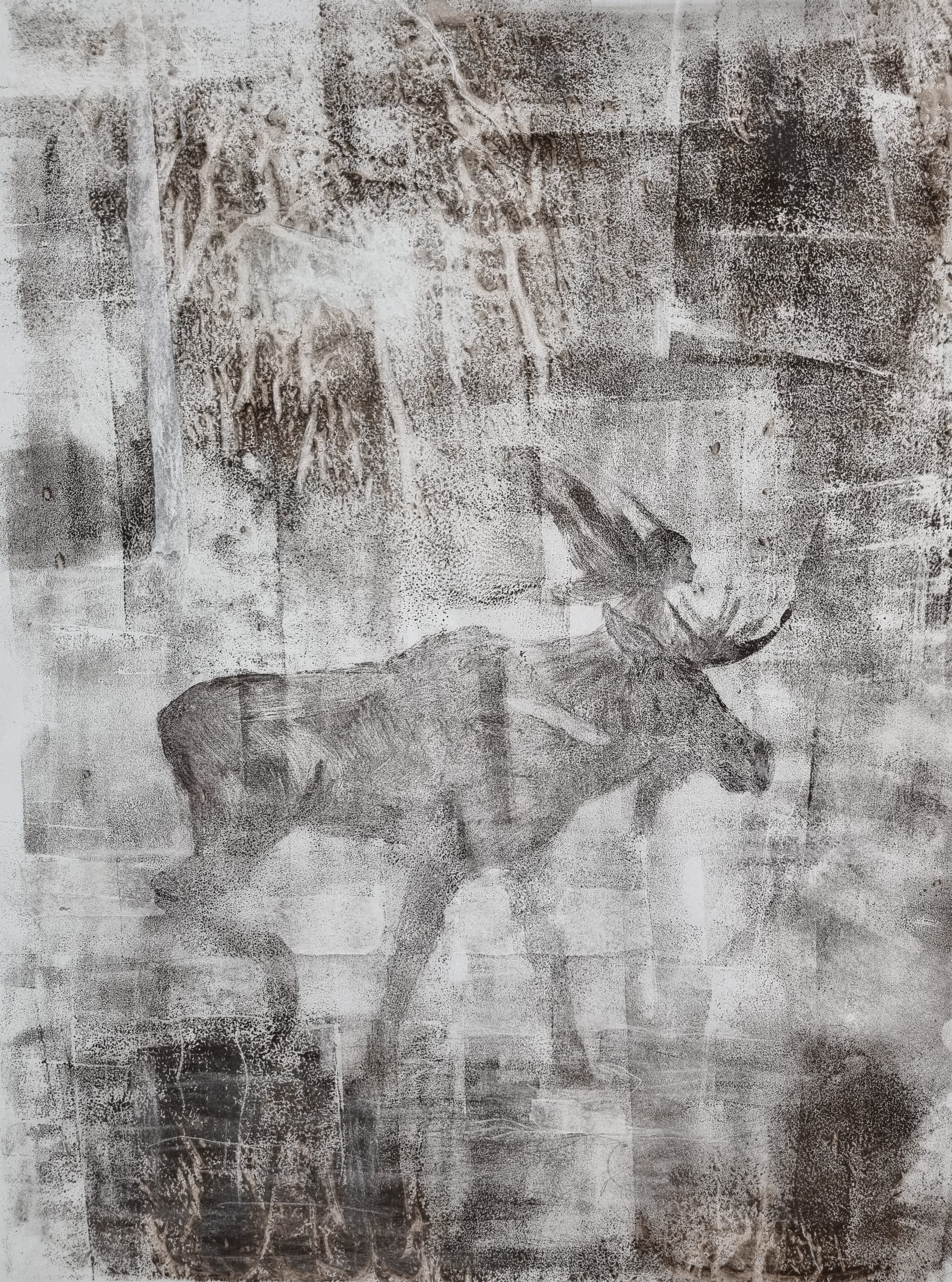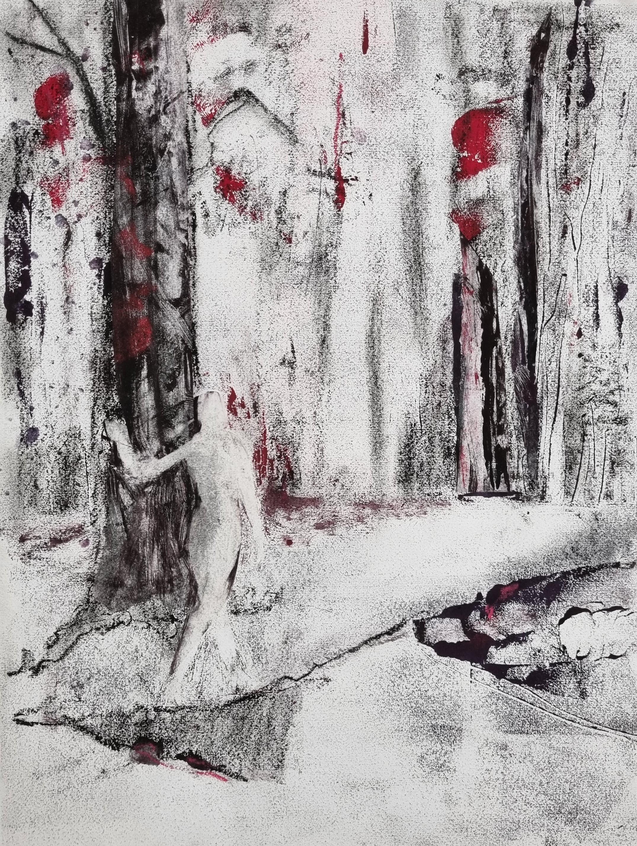 Im Rahmen meiner Abschlussarbeit habe ich die collagierte Monotypie für mich entdeckt und weiterentwickelt. Eine spezielle Technik, die aus Malerei, Druck und Collage besteht. Ich verwende nur spezielles Seidenpapier, was das Bild besonders filigran, zart und vergänglich erscheinen lässt. Mir gefällt besonders, dass ich trotz Konzept und gezieltem Arbeiten an einem Thema durch diese Technik immer wieder überrascht werde und darauf weiter aufbauend arbeiten kann. Durch den bewussten Verlust der Kontrolle und die teilweise nötigen schnellen Entscheidungen im Bild bin ich immer im Dialog mit dem Werk und schlussendlich mit mir selber.