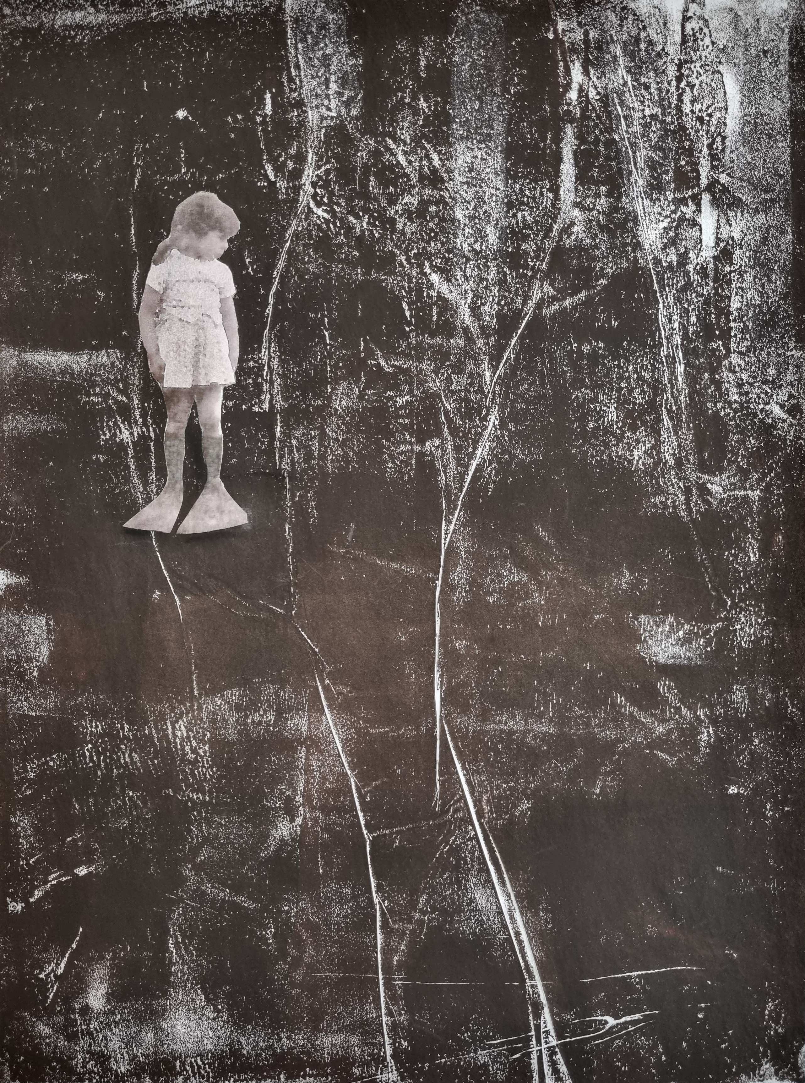 Thema: "kuriose Welt und mitten drin das Ich" collagierte Monotypie, Werkserie 15-teilig